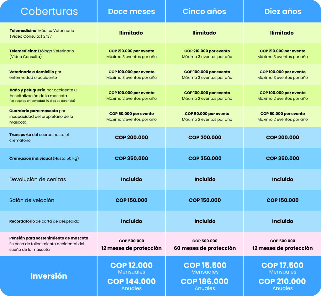 Una misma persona puede tener tantas pólizas como mascotas tenga. Sin embargo, por Mascota